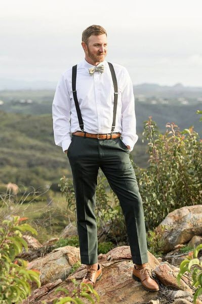Men: Slacks and linen pants with a dress shirt, or a summer suit, will easily check off all the “farm formal” boxes. No Jeans or Tuxedo. Tie is optional. Prefer bowtie, vest and suspenders.